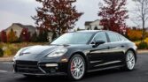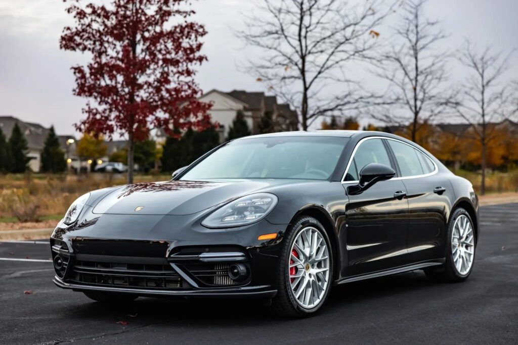 This 2017 Porsche Panamera Turbo is finished in Jet Black Metallic over black leather, and it was optioned with 21? SportDesign wheels, adaptive cruise control, a heated steering wheel, and the Premium Package Plus, which included heated and ventilated front seats, heated rear seats, and a Bose sound system. Power comes from a twin-turbocharged 4.0-liter V8 that drives all four wheels through an eight-speed PDK dual-clutch automatic transmission.